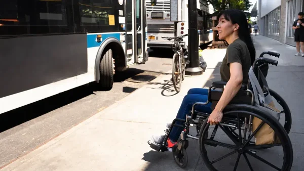 Persona con discapacidad esperando el colectivo